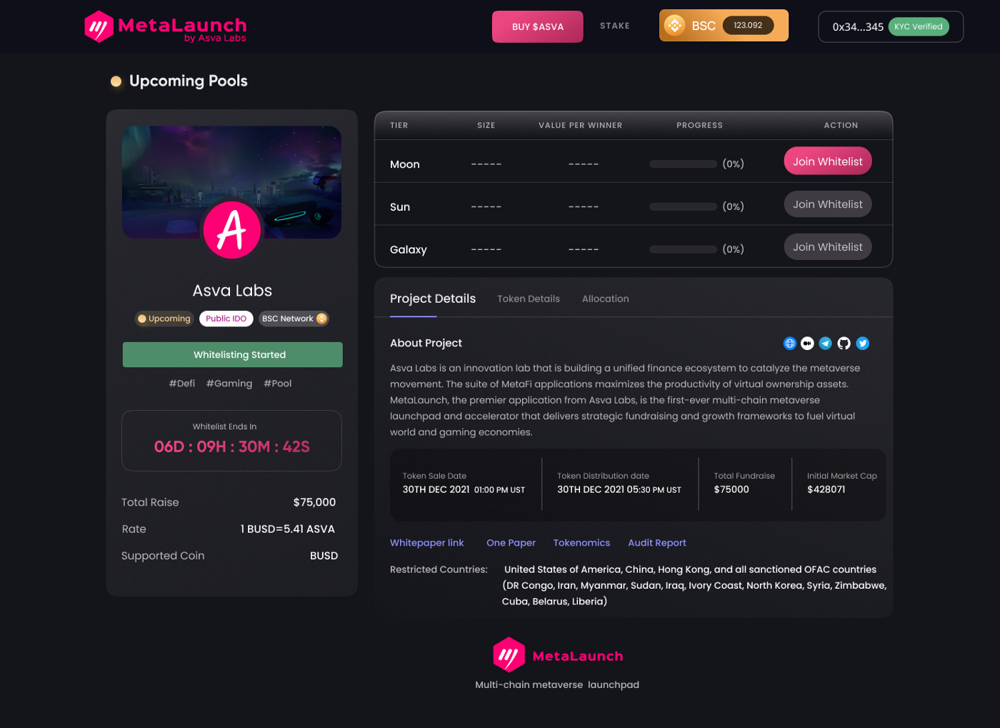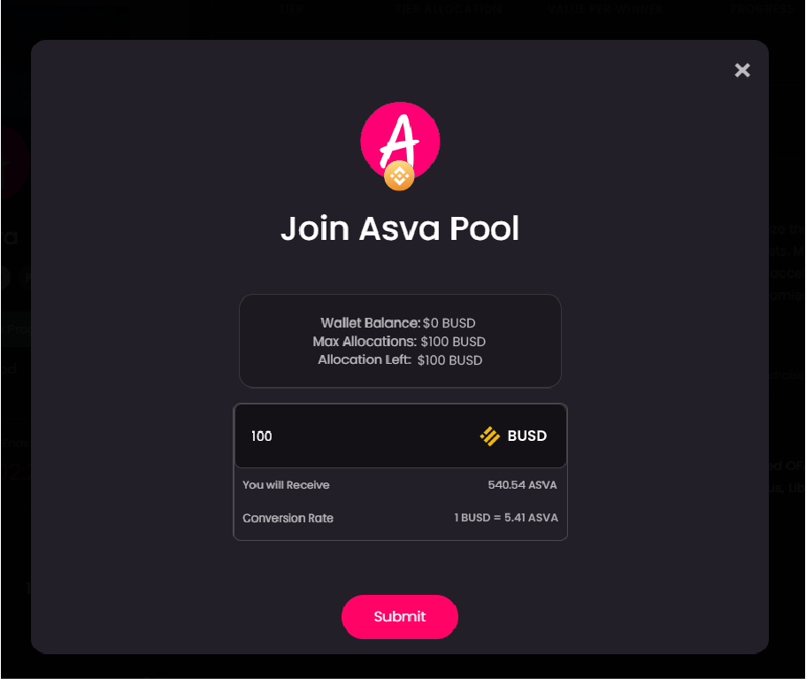 Step: 6Â Based on the number of $ASVA staked and the timeframe, users shall be whitelisted a tier allocation.
