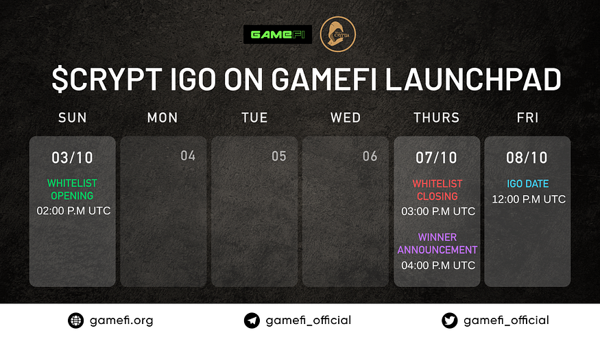 To be eligible for $CRYPT IGO on GameFi, please complete the following steps: