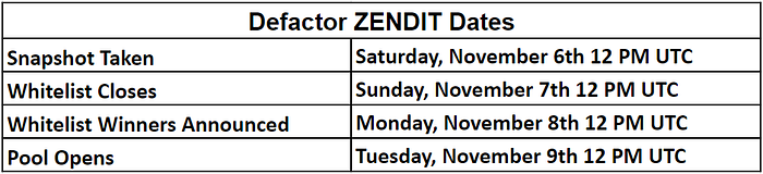 Defactor ZENDIT Pool Details