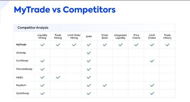 MyTrade is a DEX with Integrated Liquidity and Limit Order Mining. It provides the best price for Takers with low slippage and Makers get high capital efficiency. MyTrade provides fast and cheap transactions.