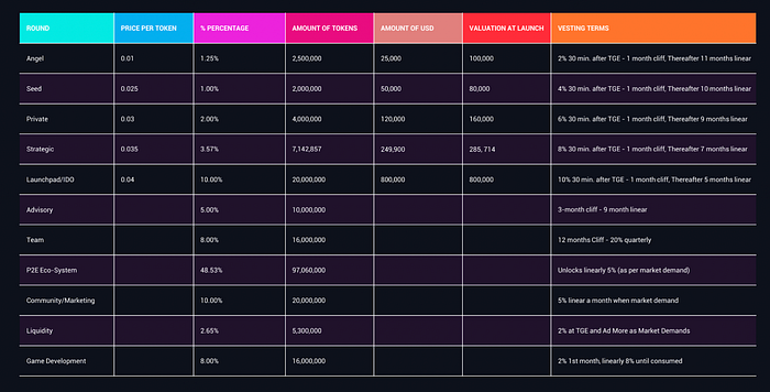 - Very low seed & private investor rounds with the majority of fundraising going to the IDO round for the players.