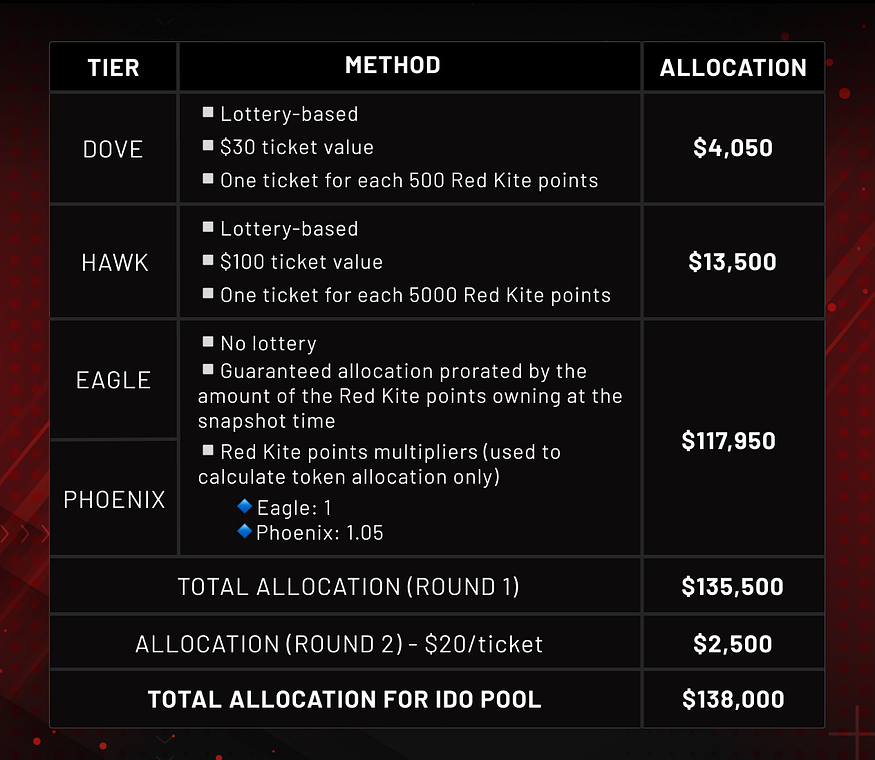 Red Kite introduces two token sales for PlaceWar: IDO Pool (whitelist winners) and Community Pool (participants on Gleam competition). The allocation for the two pools is respectively $138,000 and $2,000 $PLACE at IDO price.