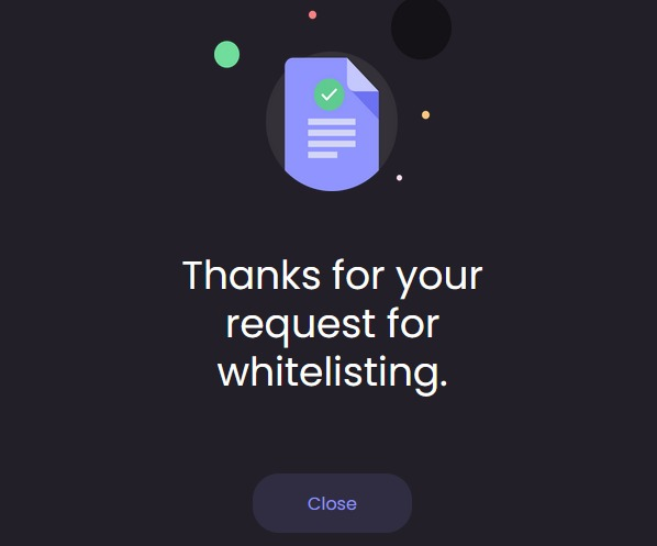 User will click on âJoin Whitelistâ, following message will appear on the screen