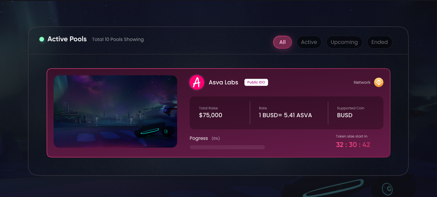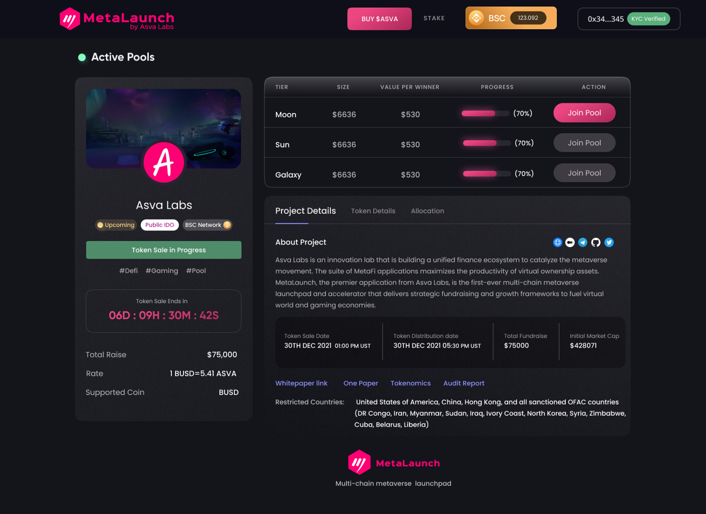 - Stake $ASVA tokens / Provide Liquidity (ASVA/BUSD) to gain access to MetaLaunch tiers and to participate in IGO on MetaLaunch Launchpad.
