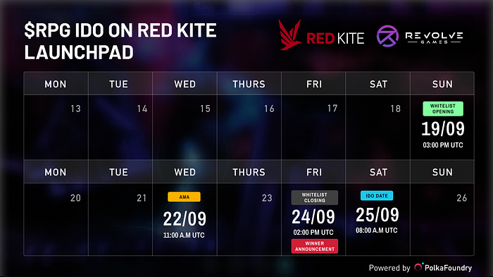 - Like and retweet the IDO announcement tweet with hashtags #RedKite #RevolveGames $PKF $RPG